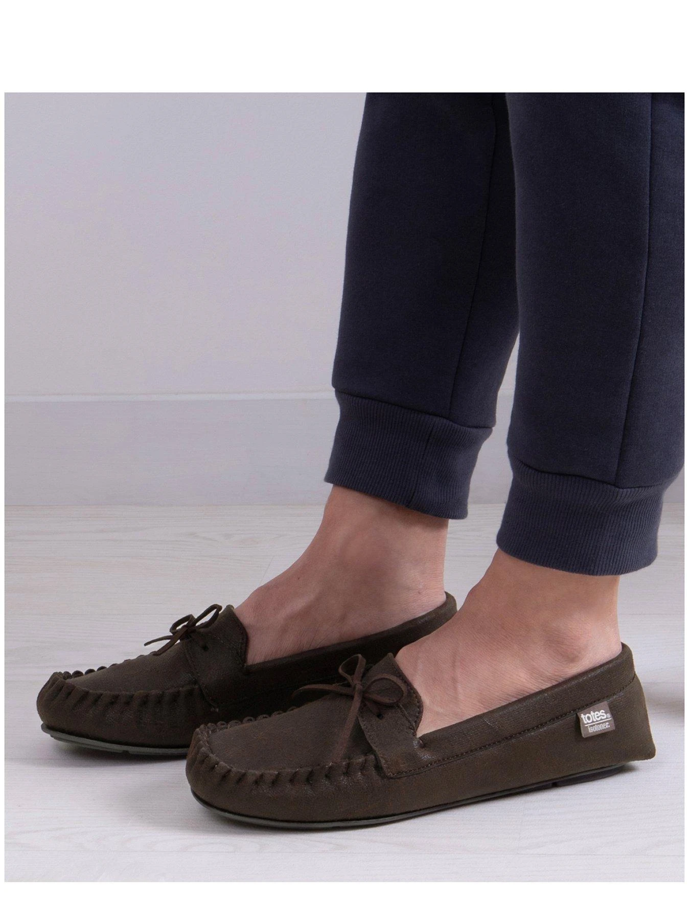 A classic yet casual moccasin slipper in a distressed dark brown fabric. A stylish addition to your indoor winter wardrobe featuring a lace tie detail and a smart herringbone patterned in-sock. Our patented Pillowstep tufted insole for unique underfoot cushioning plus memory foam, Ultra Comfort foam layers and a durable flexible sole all add up to a very smart slipper choice.