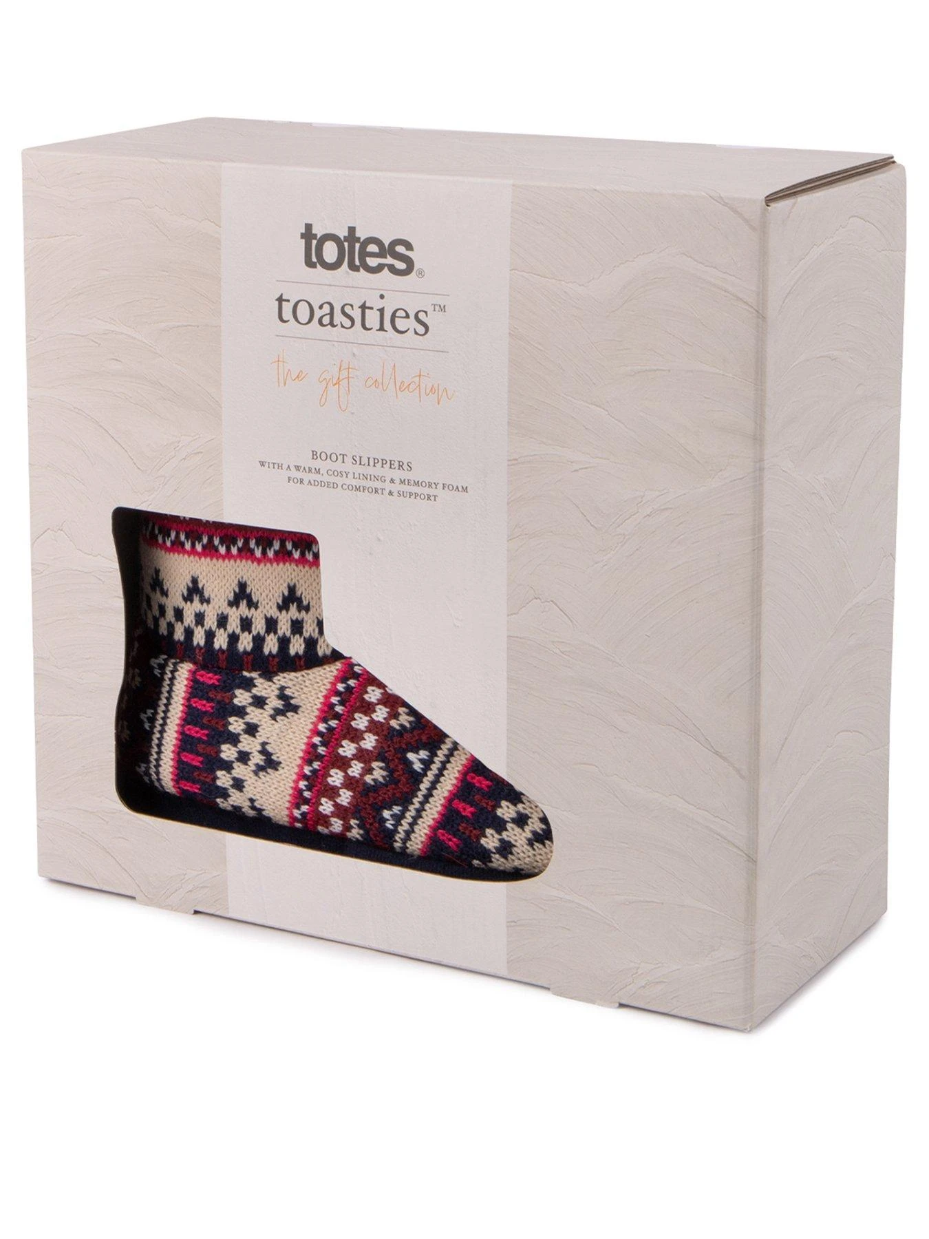 Welcome winter in festive Fair Isle! Cosy bootie style slippers in a classic berry coloured Fair Isle knit, plus a really warm faux fur lining for toasty winter feet. When it’s chilly out, chill out! Fair Isle knit design. Faux fur lining for warmth and cosiness. Memory foam for comfort. Durable textured sole. Beautifully packaged for the perfect gift.