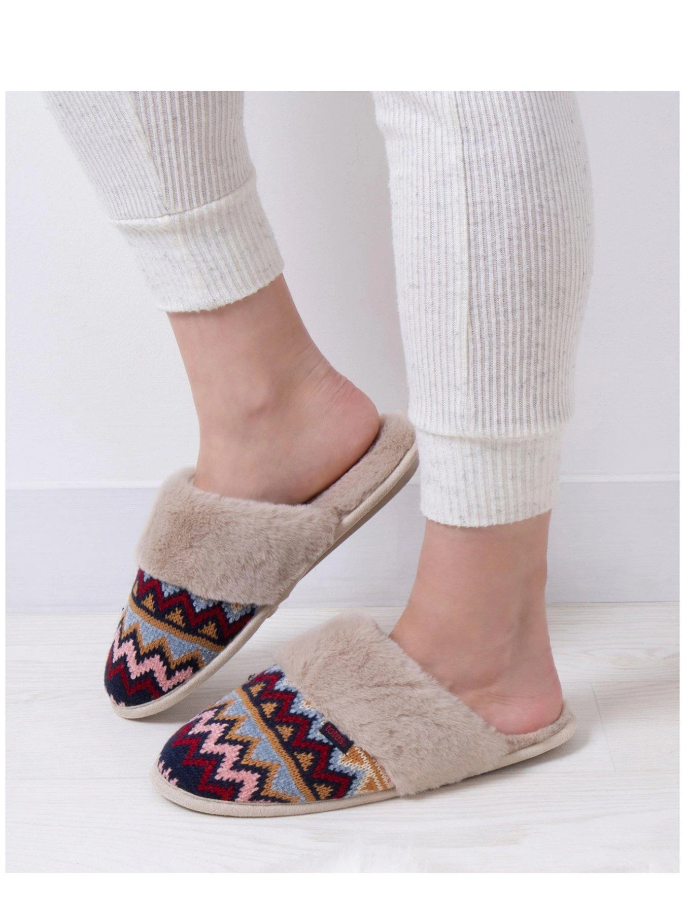 You can’t go wrong in festive Fair Isle as the temperatures start to drop! Cheerful Fair Isle mules with a really cosy sherpa lining are the perfect winter warmer to co-ordinate with comfy PJs this season. Fair Isle in classic berry, blue and pink tones. Warm and cosy sherpa lining. Durable textured sole. Memory foam for comfort.