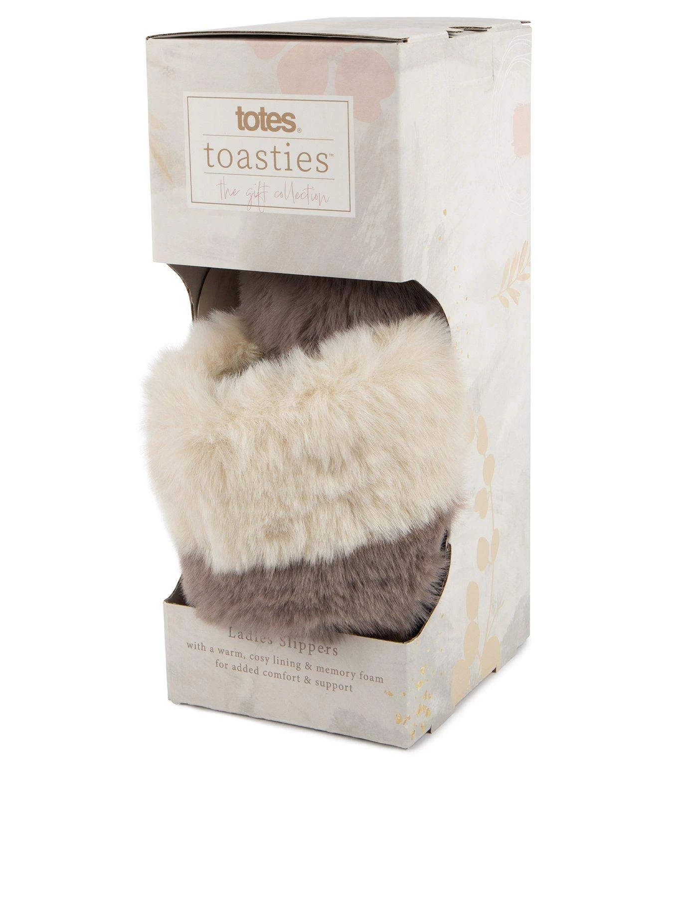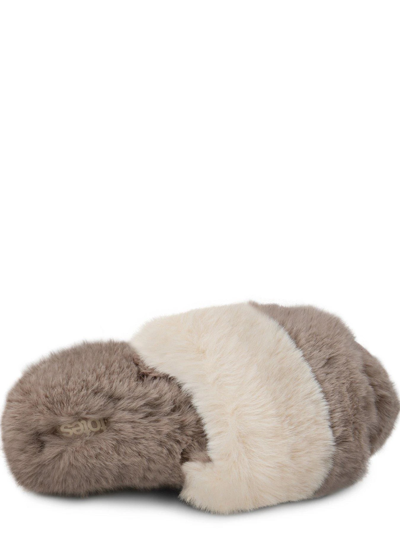 Casual and comfy, these furry sliders in contrasting shades of soft coffee and natural are stylish yet cosy and the perfect slipper to pop on at the end of a busy day. Contrast wide stripe upper plus subtle sparkle binding. Warm and cosy faux fur lining and underfoot. Memory foam for comfort. Durable textured sole.