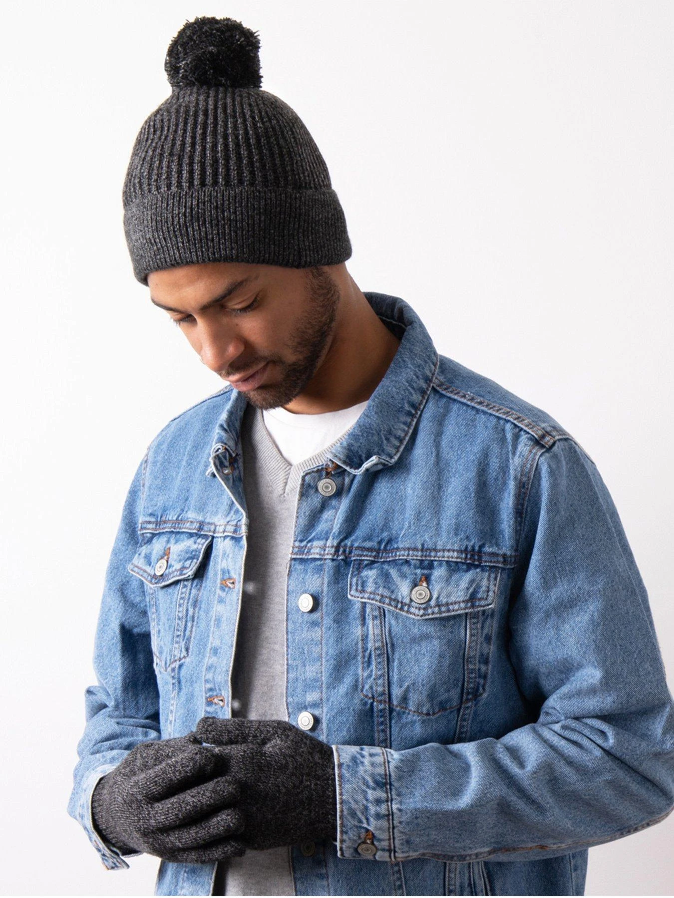 Beating winter’s chills in style! Classic knitted black/grey bobble hat co-ordinated with cosy everyday gloves for the perfect winter boost. Wool blend check design scarf. One size fits most. Beautifully packaged for the perfect gift.