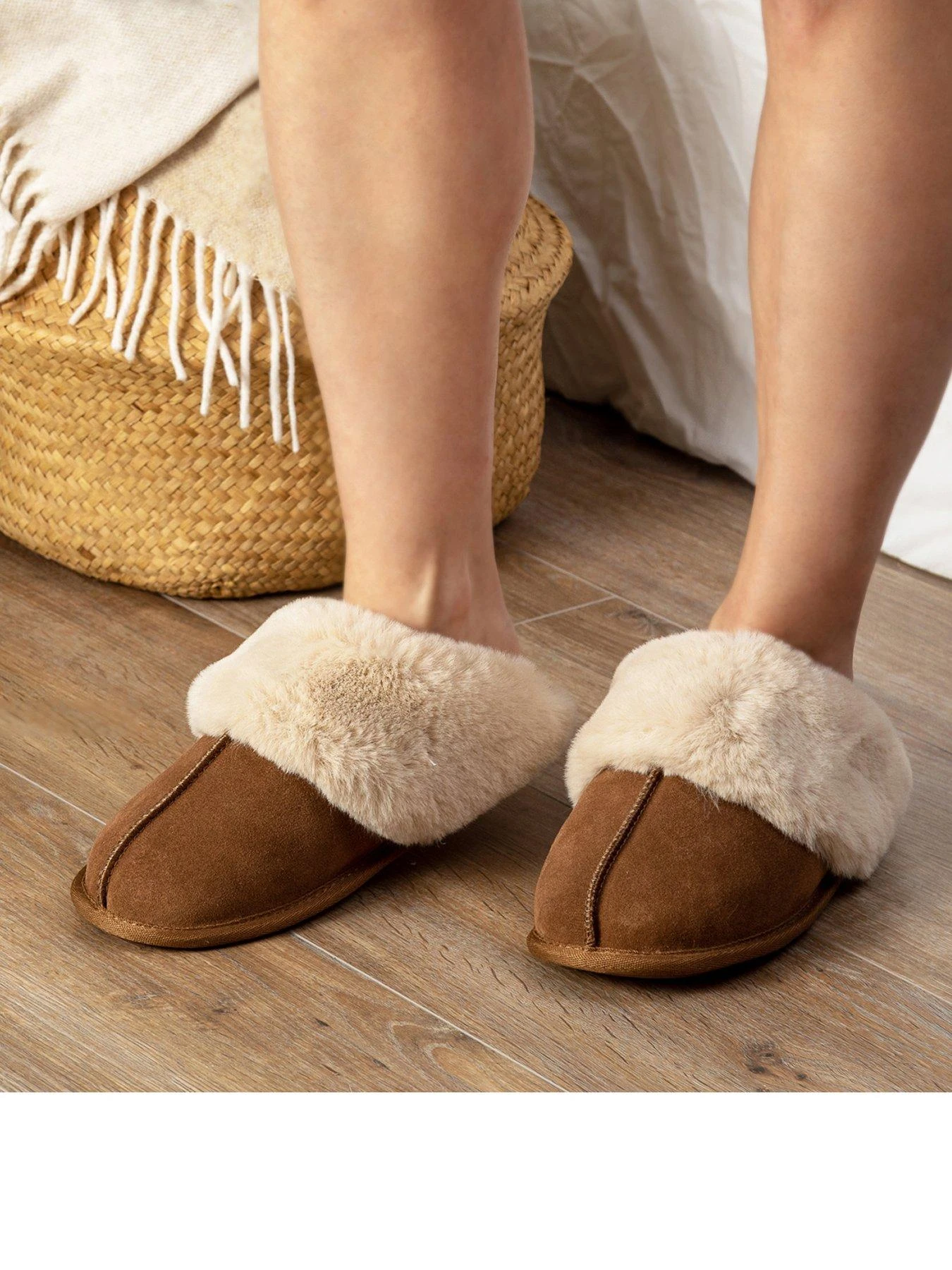 Totes Isotoner Ladies Mule Slipper With Fur Cuff are made from 100% Real Suede and feature Memory Foam, Faux Fur Lining and a Durable Sole, finished with a Water Repellent Layer to, protect your slippers from any accidental spillages.