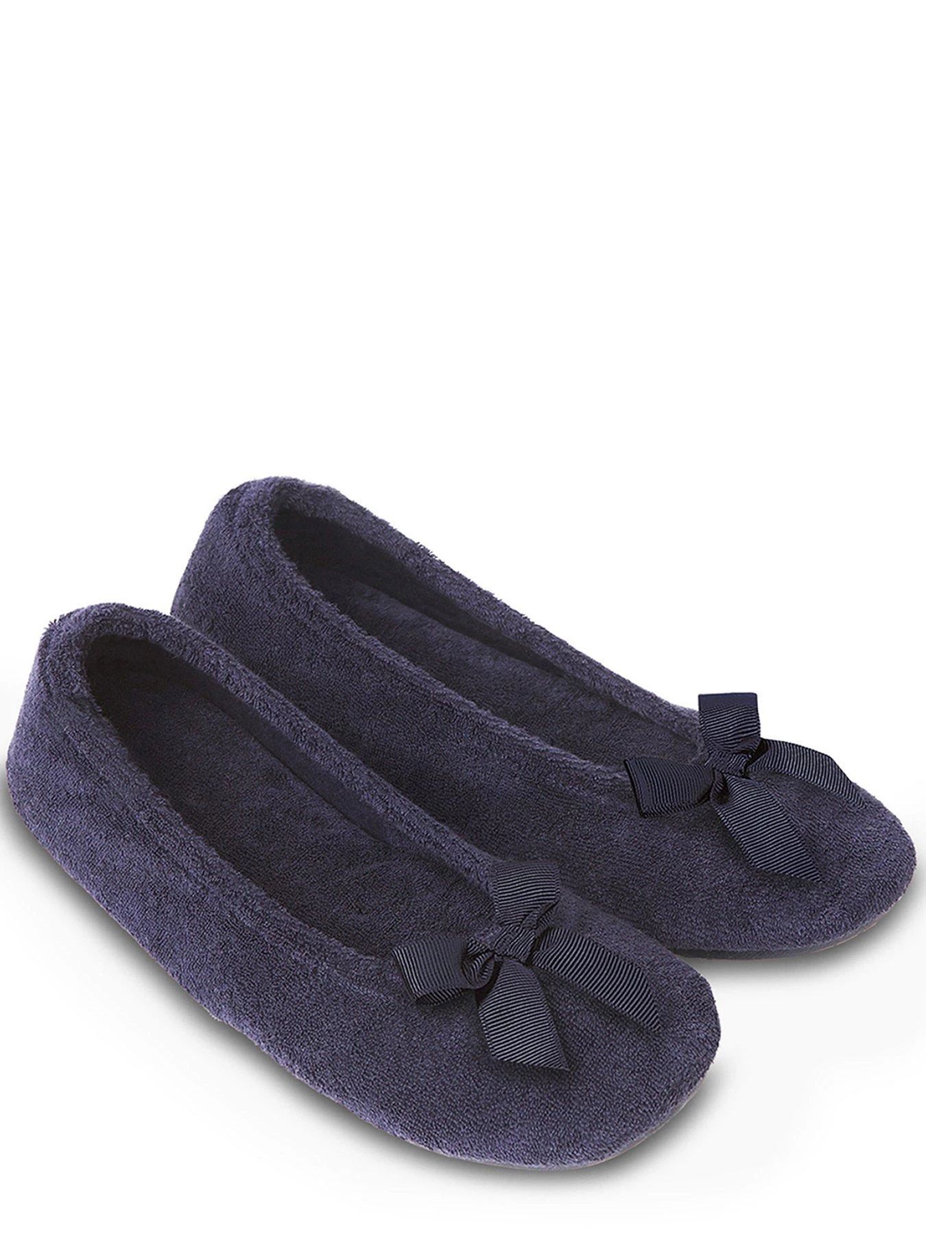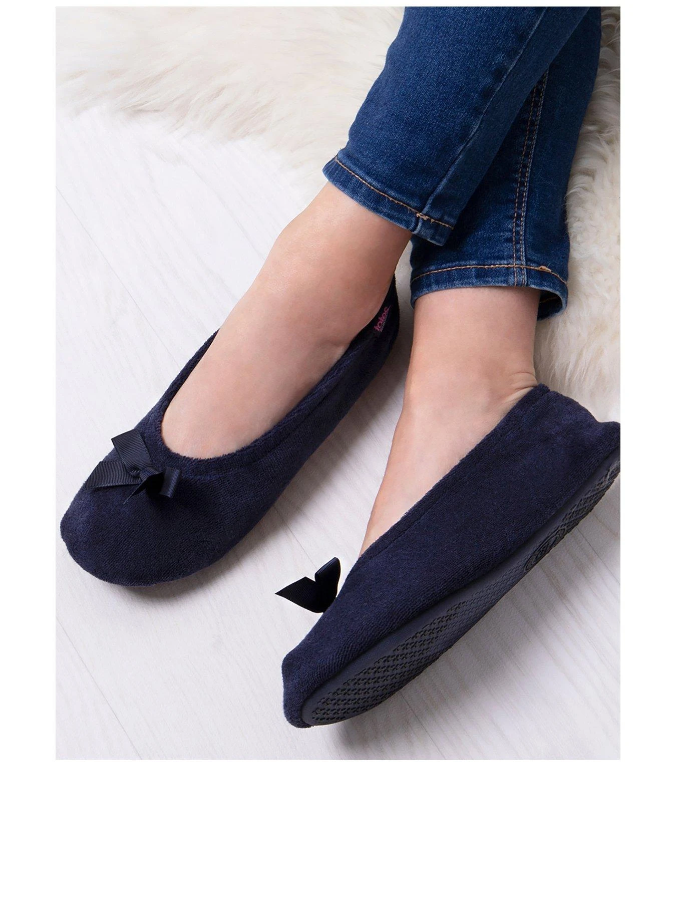 A totes Isotoner classic – the 4-way stretch, cotton rich Terry Ballerina Slipper features our unique patented Pillowstep tufted cushioned insole for extra comfort, plus they have a durable sole and are machine washable.