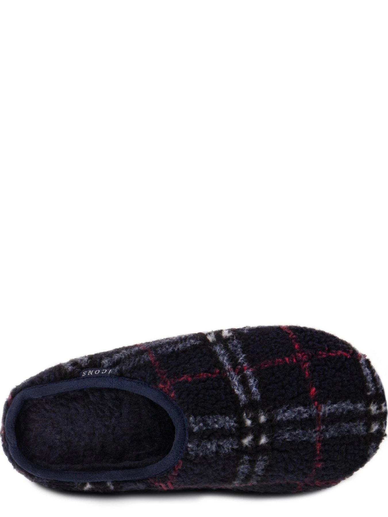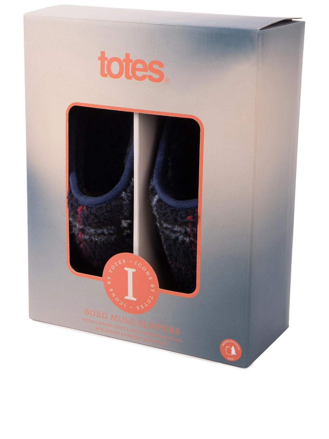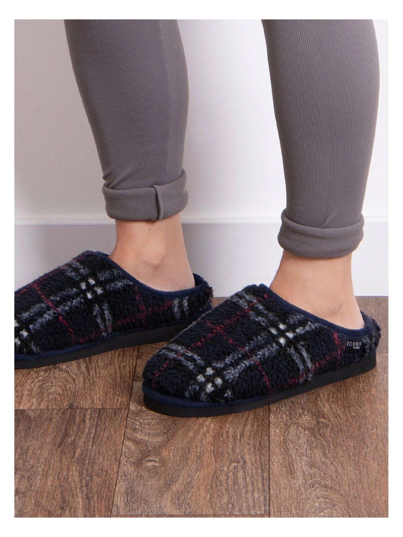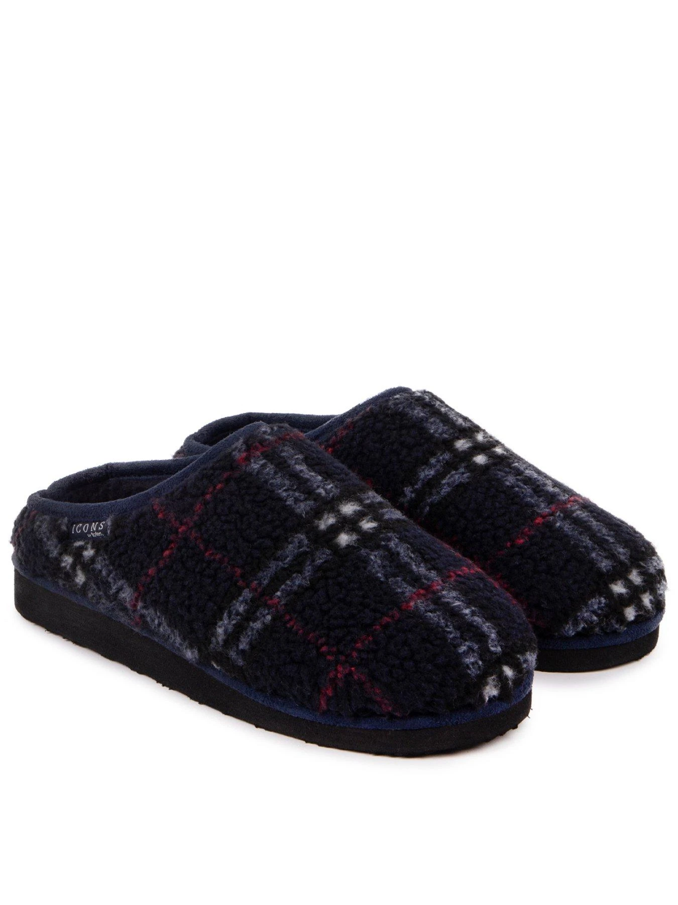 - Chunky and comfy, cosy and warm – in an on-trend navy tartan check borg fabric, these iconic slip-on mule slippers will team perfectly with the rest of their indoor winter wardrobes.