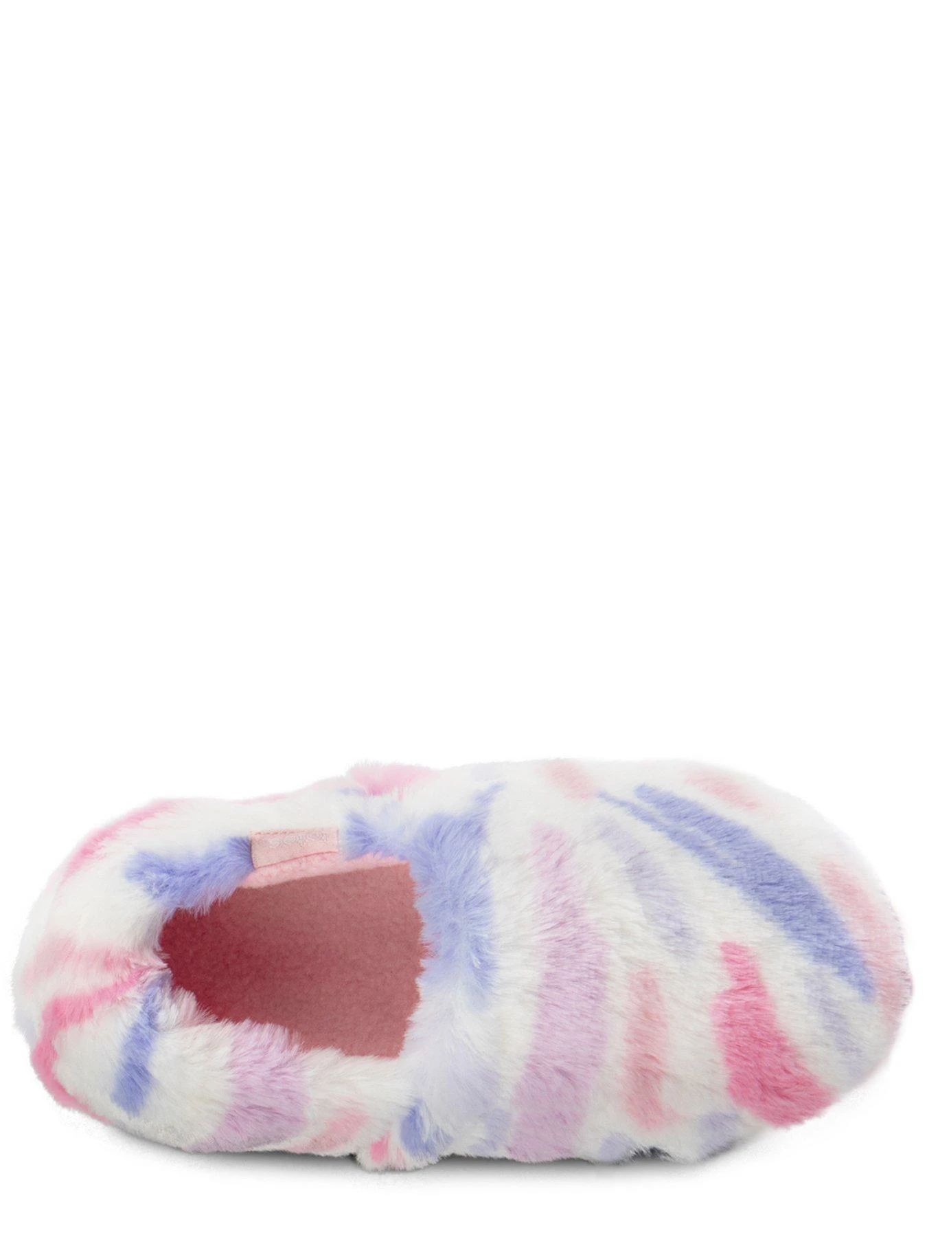 Grown up slippers for your little ones; lovely splashes of soft pink, blue and lilac decorate these full back slippers with a durable sole and gorgeously warm fleece lining. Co-ordinate with their winter cosies for a snuggled up winter season. Fluffy faux fur upper with colourful splash design. Fleece lining for warmth and comfort. Durable sole. Machine washable at 30°. Beautifully packaged for the perfect gift.