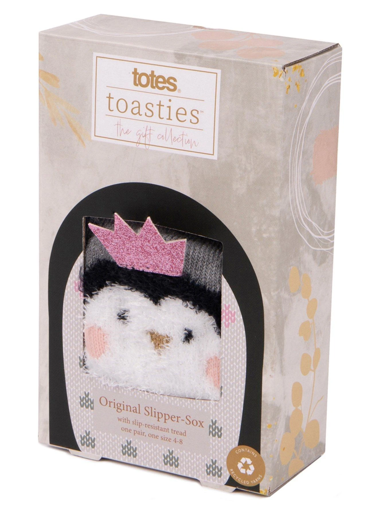The cutest penguin design graces our gorgeous novelty slipper-sox this year. Treaded, obviously, because they’re totes toasties slipper-sox! totes slip-resistant tread. One size fits most. Machine washable at 30°. Beautifully packaged for the perfect gift.