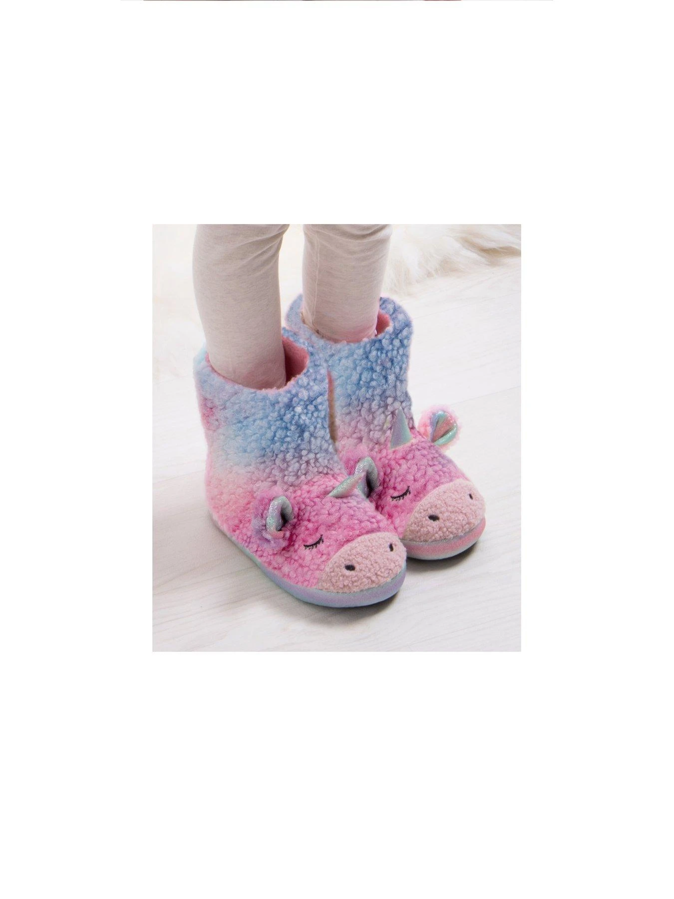 Magical and mystical! A super cute 3D unicorn design makes these great bootie slippers the perfect indoor winter footwear for your little ones. Add in the super glitter effect and they’ll soon be whisked away to enchanted lands where imagination flies. Textured faux fur upper. Warm and cosy fleece lining. Durable sole. Machine washable at 30°.